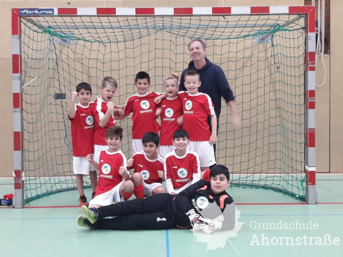Heute spielten die Jungen unter der Leitung von Herrn Wagner um den ersten Platz in der Vorrunde der Kreismeisterschaften im Hallenfußball. Sie sind in der Endrunde nun ganz vorne mit dabei, denn sie erreichten nach vier Spielen den ersten Platz. Wir freuen uns und gratulieren!