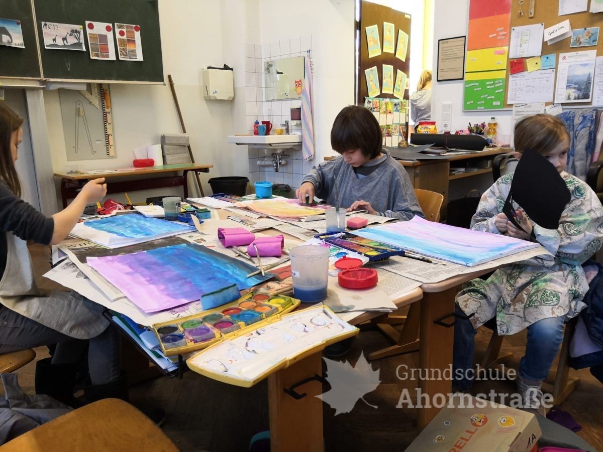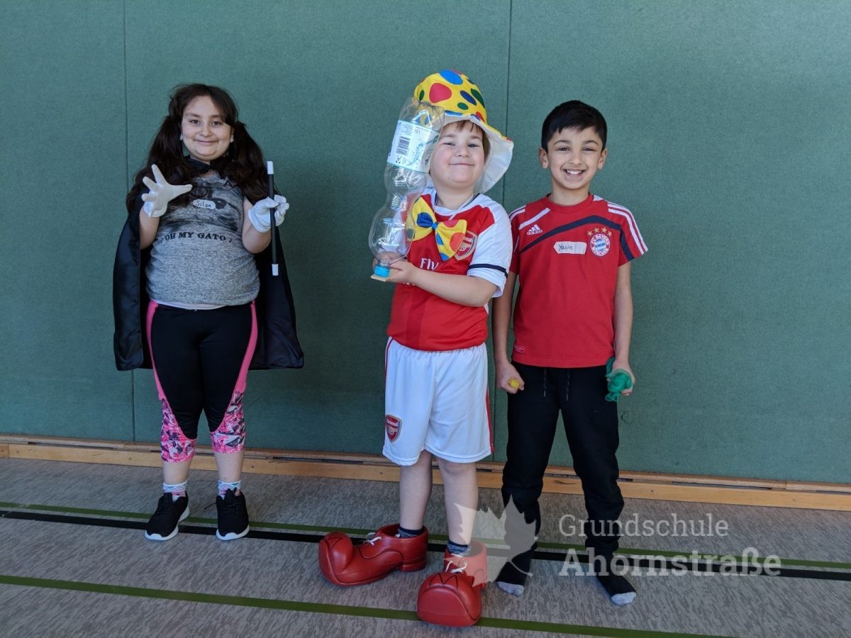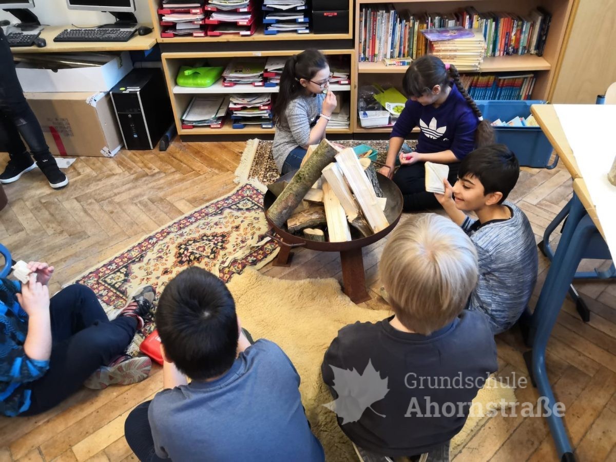Heute startete unsere Projektwoche unter dem Motto „Eine Reise durch die Welt“. Alle Kinder der Grundschule Ahornstraße haben sich in den 17 Projektgruppen zusammengefunden. Nach einem ersten Kennenlernen mit den neuen Mitschülern aus anderen Jahrgangsstufen und teils unbekannten Lehrern, haben sich alle in ihr Projekt eingearbeitet. Im Indianer-Projekt wurden zum Beispiel Trommeln gebastelt und schließlich am nachgestellen Lagerfeuer gefrühstückt. Im Projekt „Tiere in aller Welt“ wurden erste Kunstwerke erstellt und die Kinder des Weltall-Projekts kennen jetzt alle unsere Planeten der Reihenfolge nach, ausgehend von der Sonne.