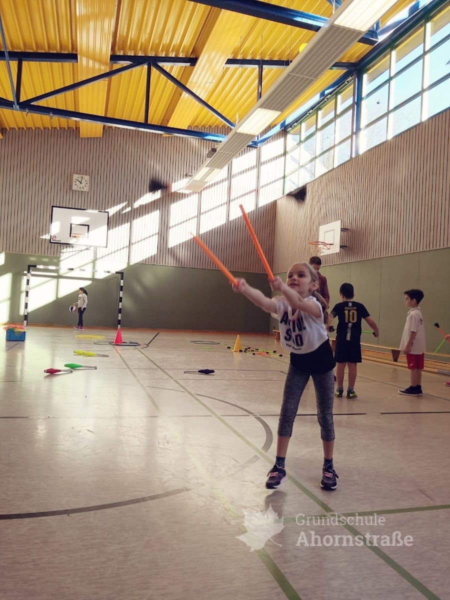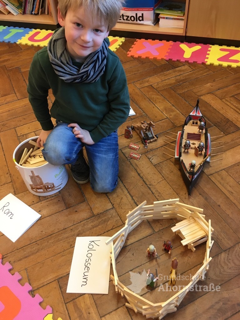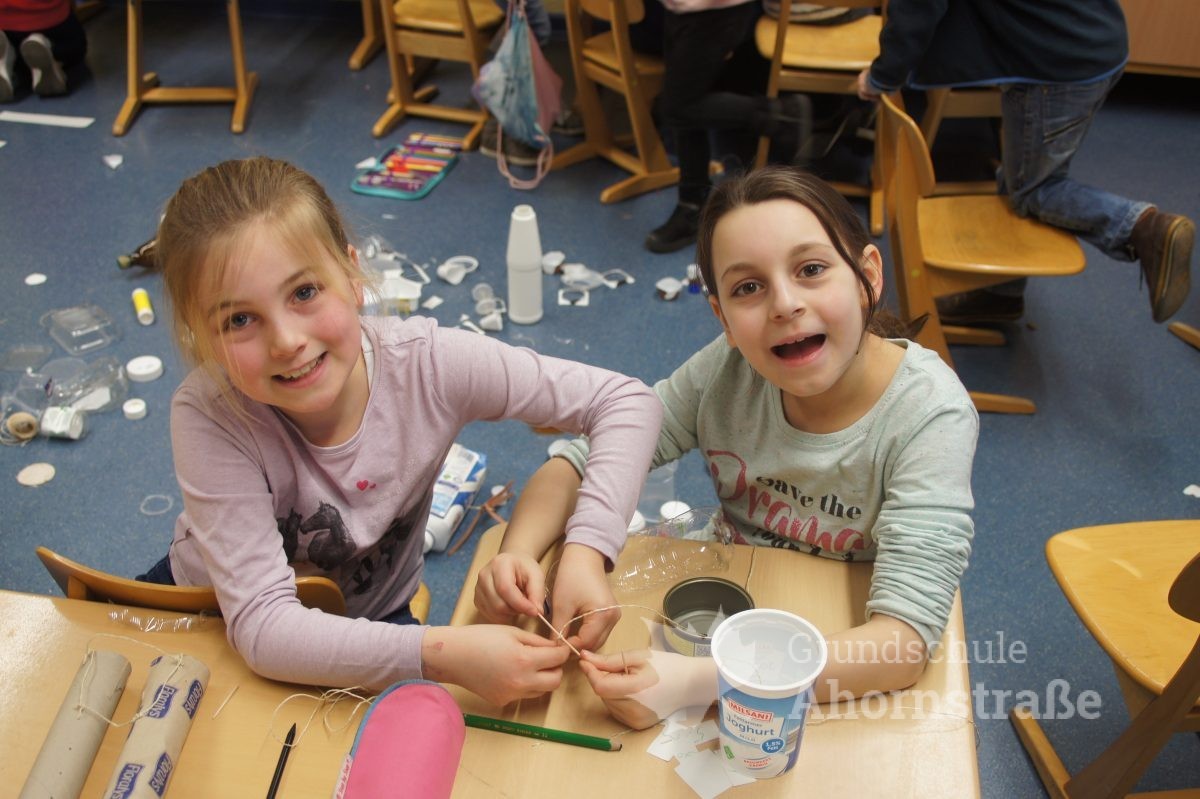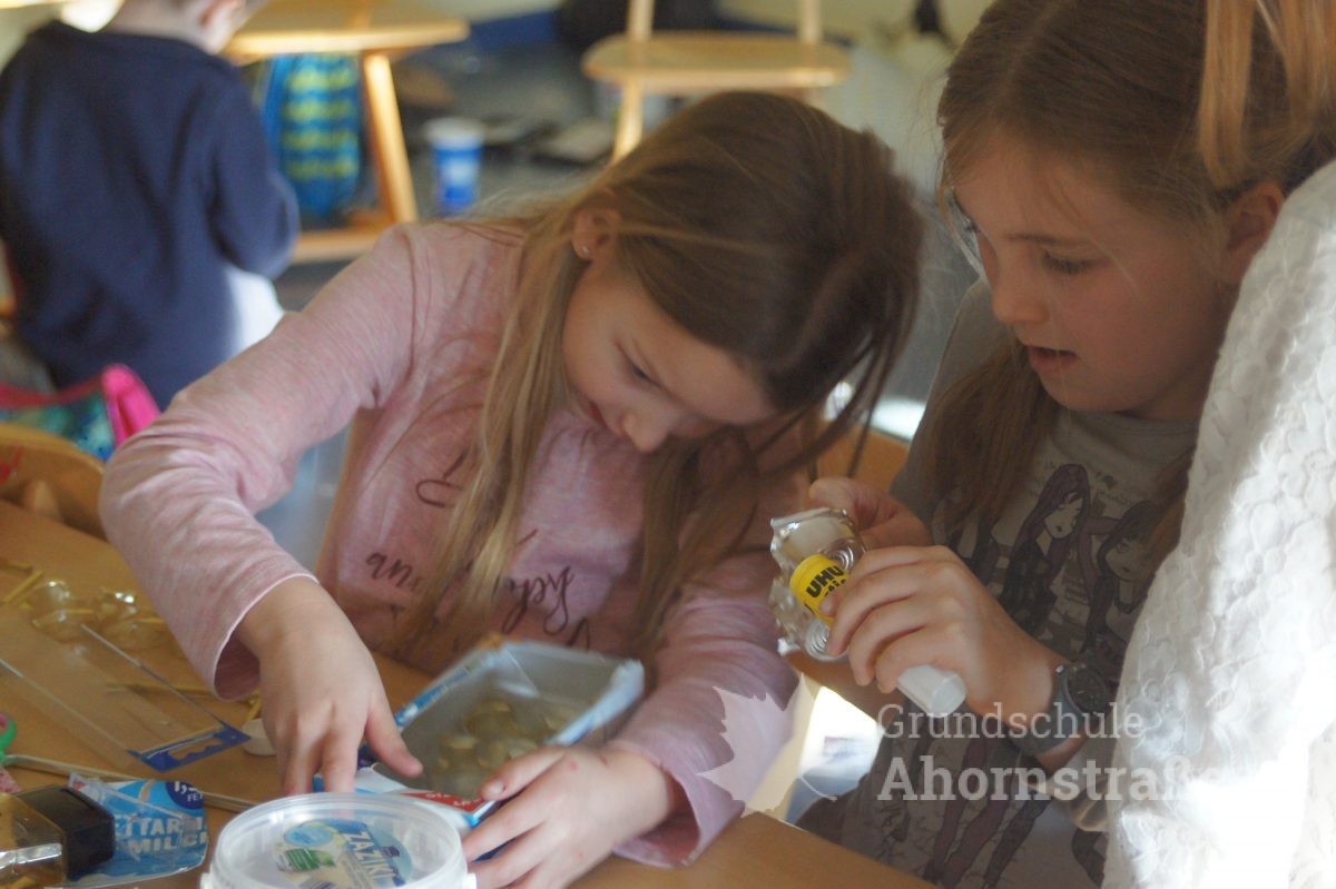 Heute startete unsere Projektwoche unter dem Motto „Eine Reise durch die Welt“. Alle Kinder der Grundschule Ahornstraße haben sich in den 17 Projektgruppen zusammengefunden. Nach einem ersten Kennenlernen mit den neuen Mitschülern aus anderen Jahrgangsstufen und teils unbekannten Lehrern, haben sich alle in ihr Projekt eingearbeitet. Im Indianer-Projekt wurden zum Beispiel Trommeln gebastelt und schließlich am nachgestellen Lagerfeuer gefrühstückt. Im Projekt „Tiere in aller Welt“ wurden erste Kunstwerke erstellt und die Kinder des Weltall-Projekts kennen jetzt alle unsere Planeten der Reihenfolge nach, ausgehend von der Sonne.