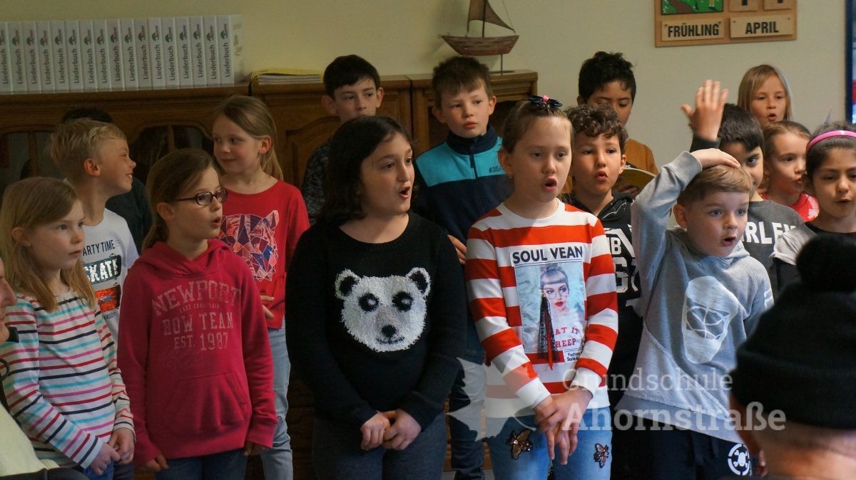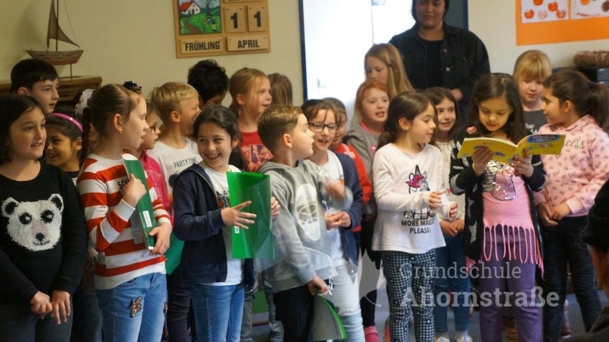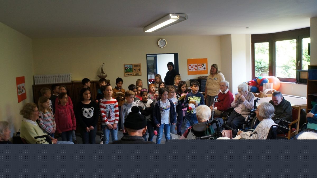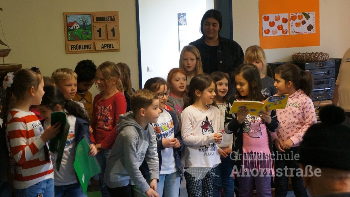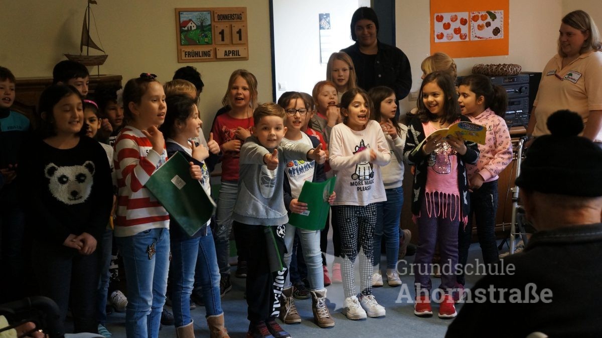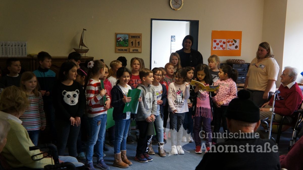 Heute machte sich die Klasse 2a auf den Weg zum Buchenhof. Dort wollten sie den Bewohnerinnen und Bewohnern des Seniorenheimes eine Freude machen und ihnen ihre eingeübten Lieder vortragen. Die Lieder sangen sie zuvor bei der Singveranstaltung „Klasse, wir singen“ (siehe Bericht auf dieser Seite). Die Kinder wurden sehr freundlich empfangen und waren sehr gerührt, wie aufmerksam und dankbar ihre Zuschauer waren. Vor allem bei dem Lied „Dat du min Leevsten büst“ sangen viele Seniorinnen und Senioren leise mit. Sowohl bei den Kindern als auch bei den Zuschauerinnen flossen sogar kleine Tränen. Es war rundum eine wunderschöne Aktion, ganz einfach und unkompliziert organisiert und durchgeführt und doch mit großer Wirkung auf beiden Seiten. Mit dabei war unsere derzeitige Praktikantin Ahinda Majid.