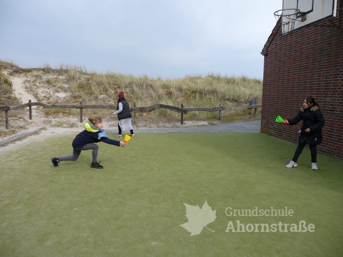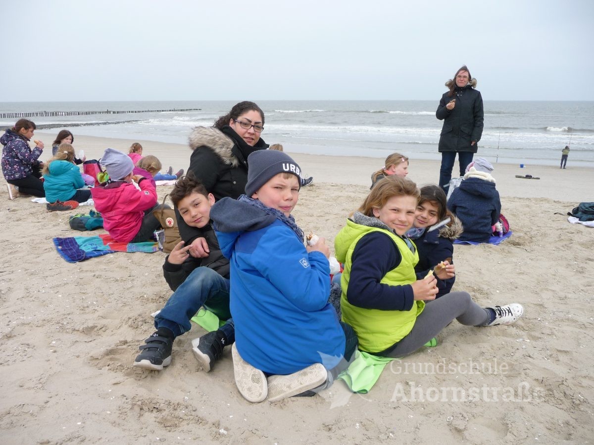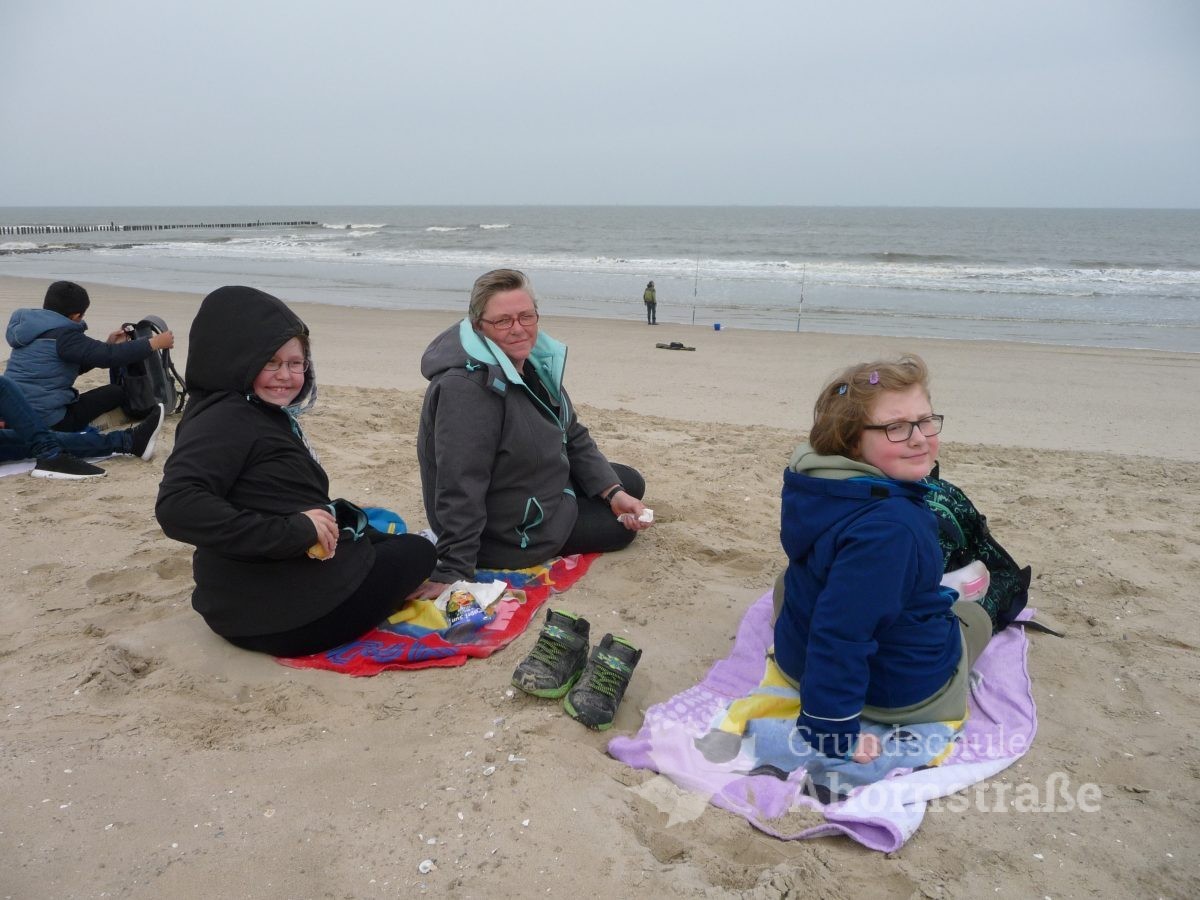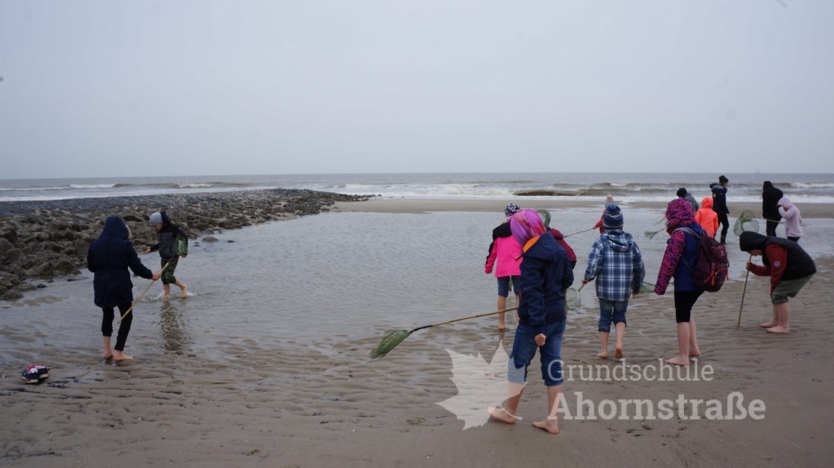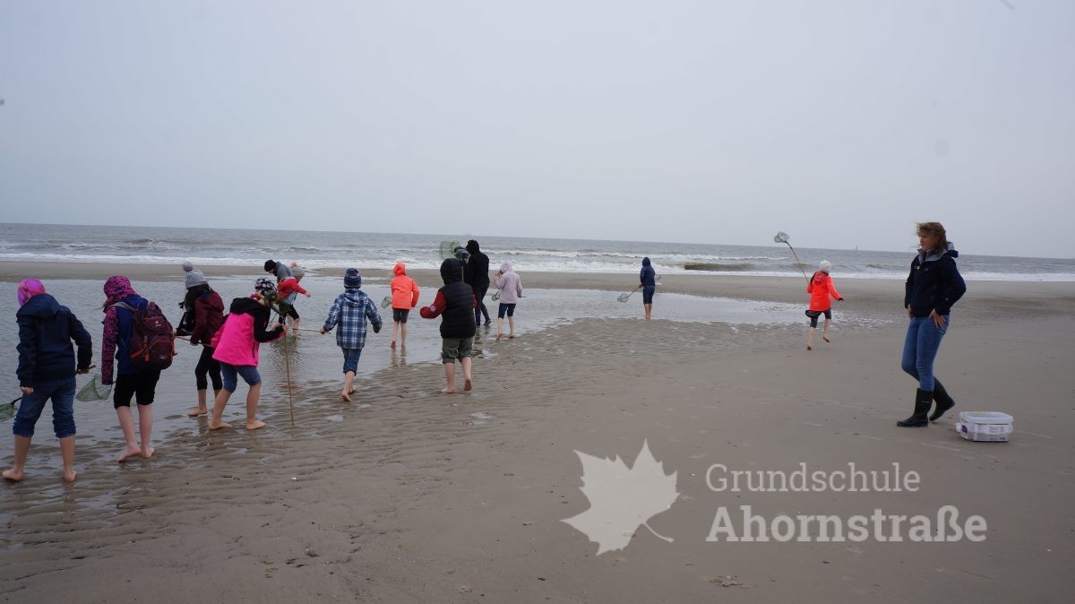Heute machte sich die 3c auf in die Nationalparkstation Wattenmeer zum Kescherbau. Unter fachmännischer und freundlicher Anleitung bastelten sich die Kinder einen eigenen Kescher mit dem sie sich anschließend auf die Suche nach Meerestieren machten. Sie lernten einiges, zum Beispiel, dass die Schwertmuschel vor vielen Jahren aus Amerika von Frachtschiffen in únsere Nordsee eingeführt wurde. Morgen nimmt die 3b an diesem Programm teil. Mal sehen, was sie so finden! Heute picknickte die Klasse 3b ausgiebig am Strand! Am Nachmittag nutzen alle Kinder die Spielmöglichkeiten im und am Haus: Kicker, Tischtennis, Bolzplatz und Abenteuerspielplatz. Nach dem Abendessen blieben einige Kinder im Gruppenraum und machten Spiele, während die anderen sich auf einen langen Abendspaziergang am Meer entlang auf machten. Für große Aufregung sorgte dabei ein mächtig großer Krebs, den wir zunächst für einen Stein hielten, der uns dann aber seine riesigen Scheren entgegen streckte. Wir ließen ihn in Ruhe, so dass er sich wieder eingraben konnte. Wir freuen uns alle auf den nächsten Tag!