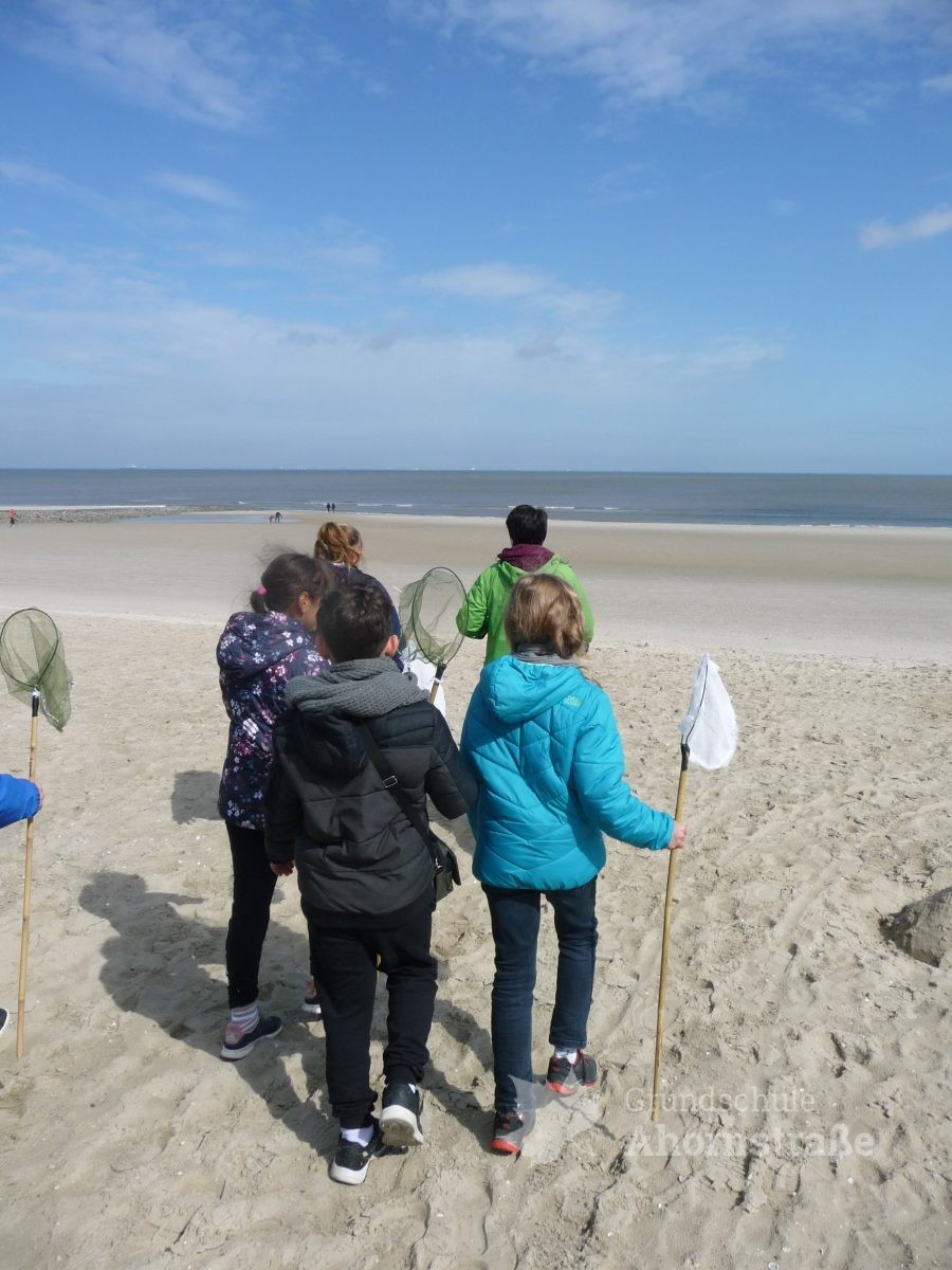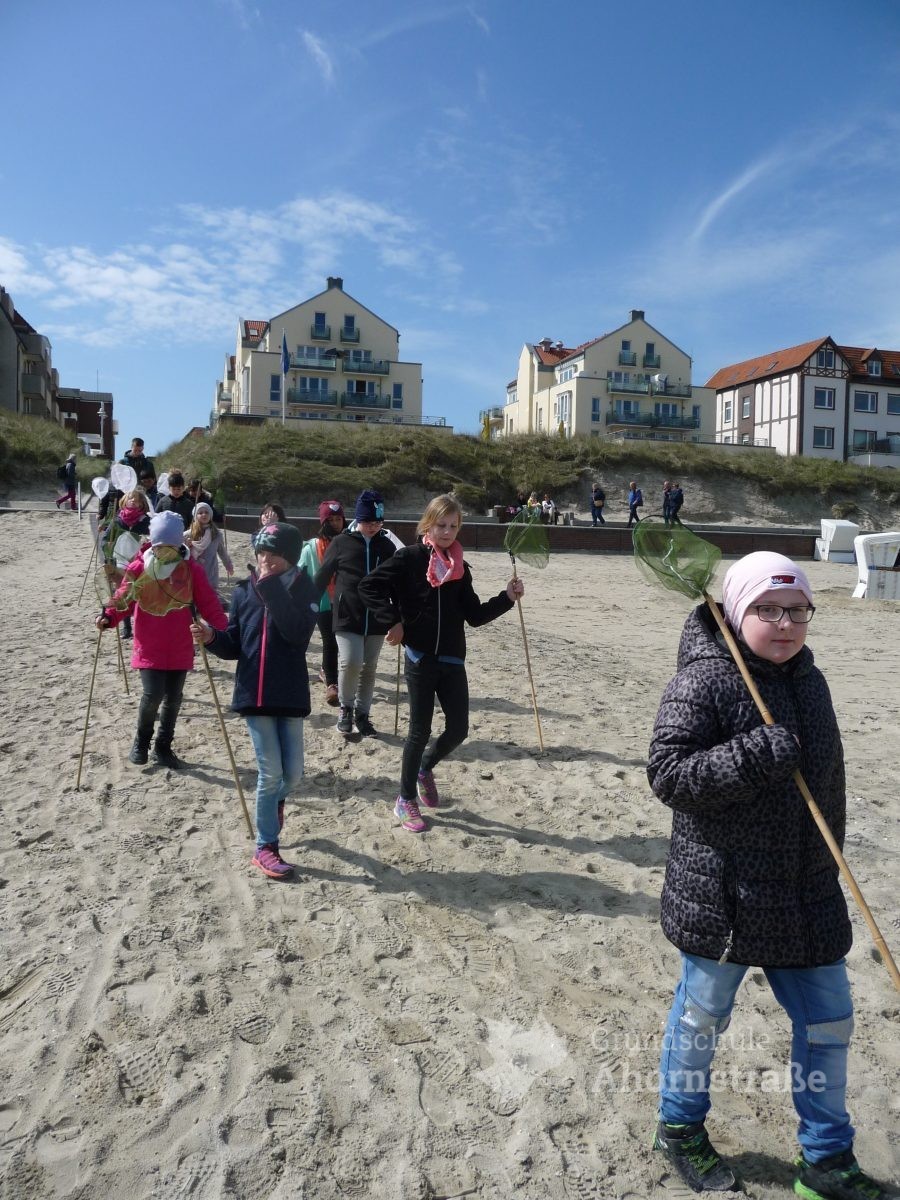 Heute schien fast den ganzen Tag die Sonne! Die Temperaturen stiegen und unser Urlaub auf Wangerooge wurde immer schöner! Die 3b machte sich nach dem Frühstück auf den Weg und bastelte Kescher, um anschließend Meerestiere zu fangen. Zeitgleich führte die 3c in der Stadt die Ralley durch. Nach dem leckeren Mittagessen riefen uns Sonne und Strand ans Meer. Abends stieg die Stimmung in der Disco. Alle Lehrerinnen und Lehrer staunten nicht schlecht, wie textsicher die Kinder viele aktuelle Lieder mitsingen konnten. Nach einer weiteren ruhigen Nacht packten die Kinder ihre Koffer und nach einem letzten Frühstück geht es auf die Heimreise. Tschüss, Wangerooge!