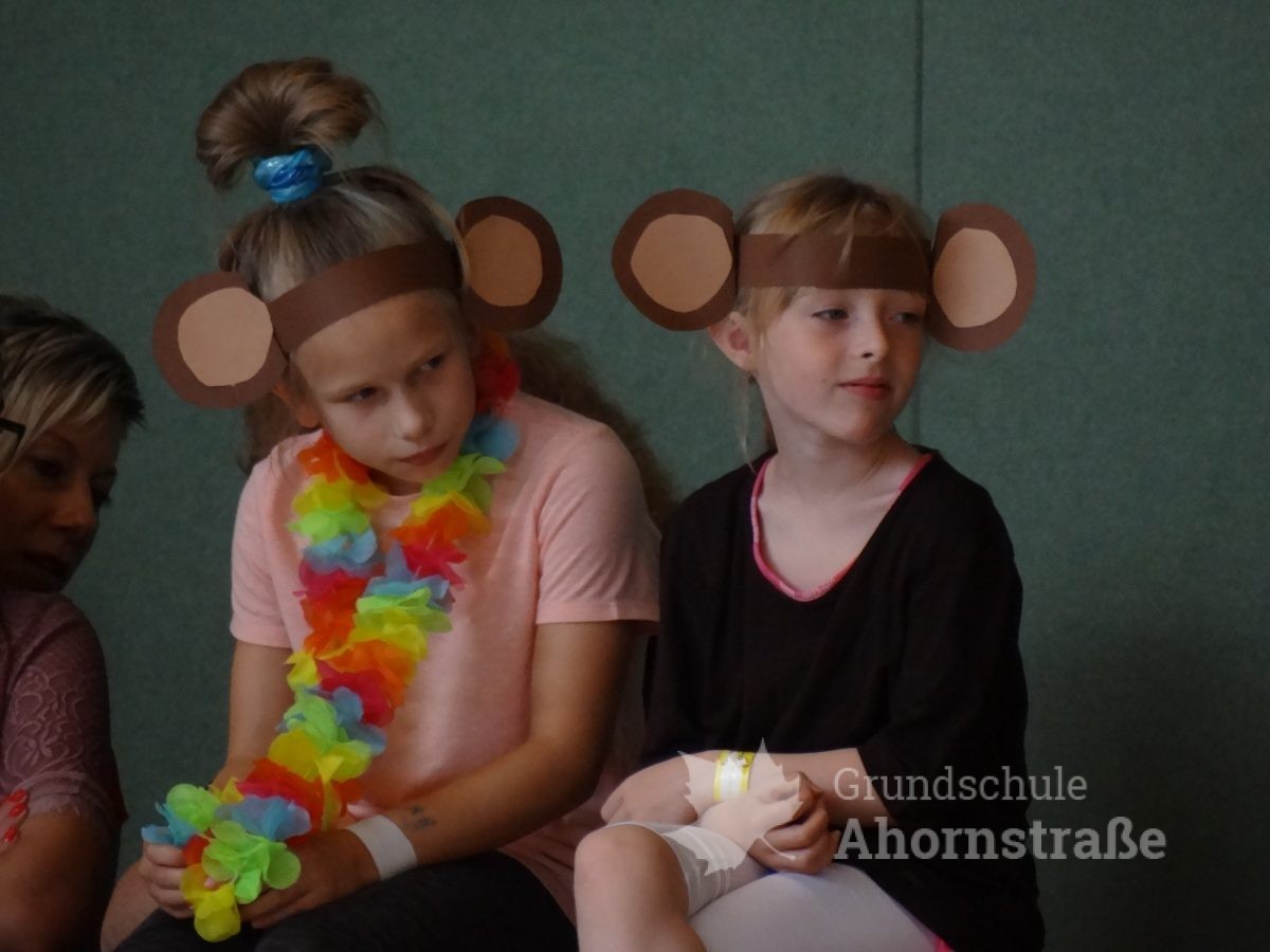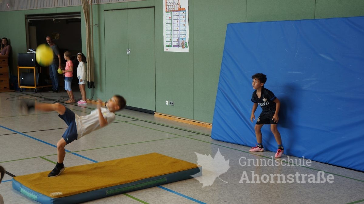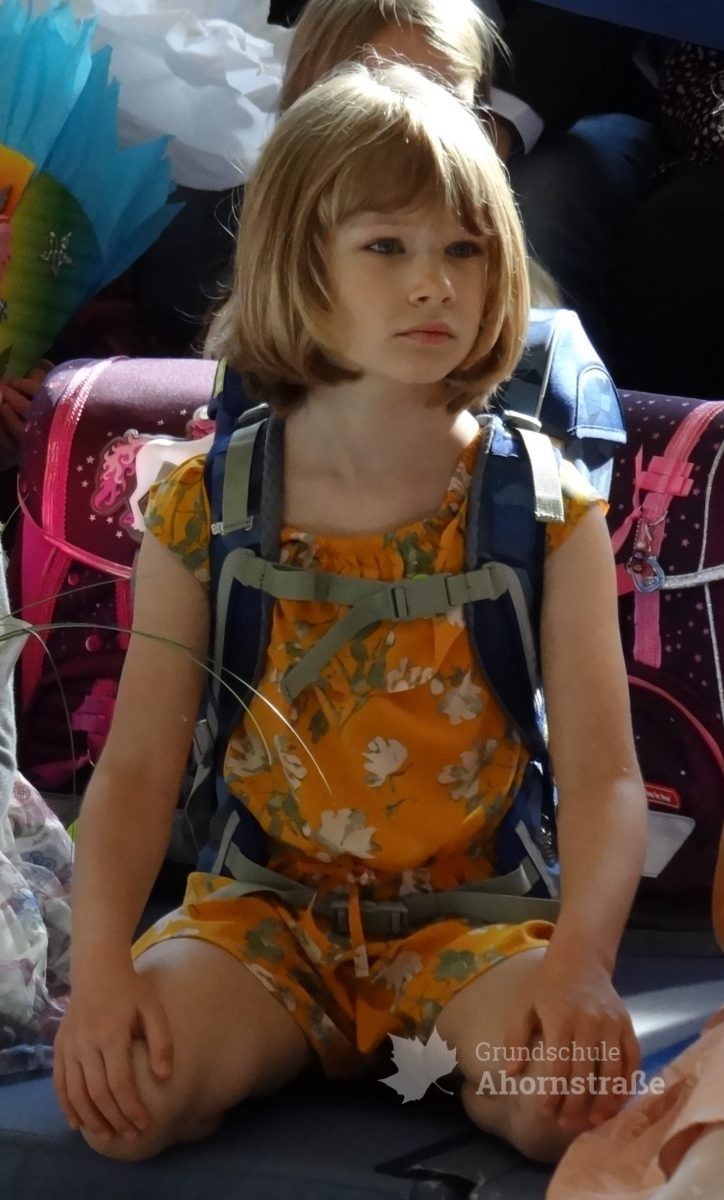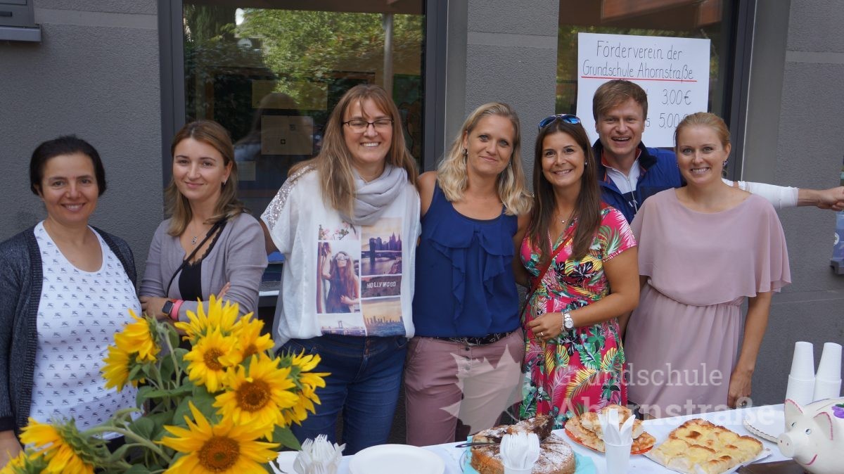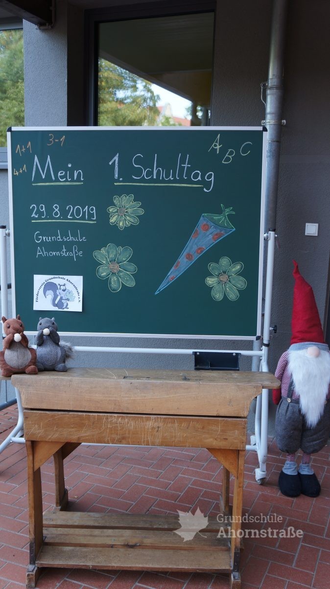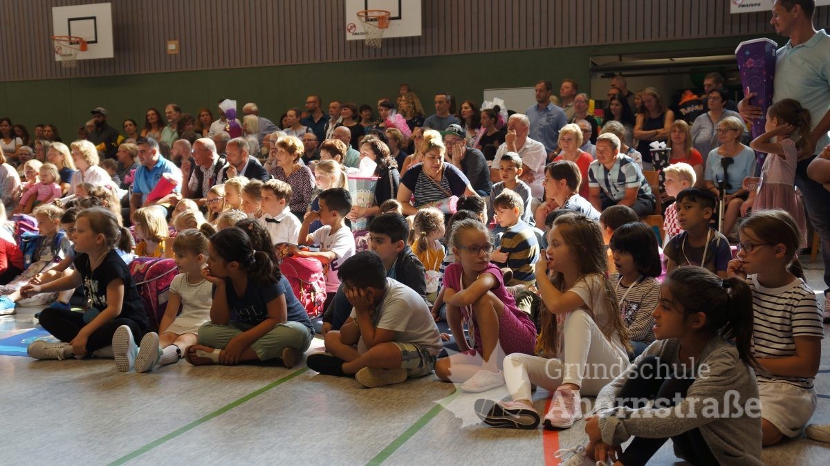 Heute war es für unsere neuen Erstklässlerinnen und Erstklässler soweit: Ihr erster Schultag an der Grundschule Ahornstraße! In der Turnhalle begrüßte Frau Daubel-Wiele alle Anwesende und erläuterte den Verlauf des Vormittages. Traditionell haben die dritten Klassen unserer Schule extra für diesen Tag ein kleines Programm vorgeführt: Die Klassen 3b führte das Stück vom „Löwen, der nicht lesen konnte“ vor, die 3a zeigte Akrobatik und einen Tanz und die Klasse 3c überzeugte durch den Anlaut-RAP, bei dem die Kinder ausgesprochen viel Text auswendig vorsingen konnten. Nach der Aufführung scharten sich unsere neuen Schülerinnen und Schüler um ihre Klassenlehrerinnen Frau Bush mit Frau Lohmann, Frau Steinhoff und Frau Vietmeyer, denn jetzt ging es in die Klassenräume. Derweil konnten sich die Eltern auf dem Schulhof bei Kaffee und Kuchen austauschen. Die zweiten Klassen hatten den Kuchen bereit gestellt und der Förderverein unter der Leitung von Frau Sala sorgte für die Bewirtung. Die folgenden Bilder zeigen, dass die Stimmung heute ausgezeichnet war: