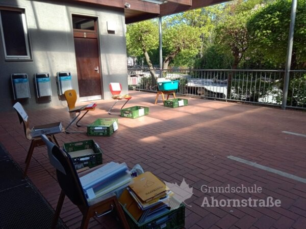 Gestern und heute konnten sich die Kinder oder Eltern neue Materialien für das „Home Office“ an der Schule abholen. Außerdem bestand die Möglichkeit, bereits bearbeitet Aufgaben abzugeben. Nun haben die Lehrerinnen und Lehrer allerhand nachzusehen! Anfang nächster Woche stellen wir die Stühle und Kästen erneut bereit, dann können die Aufgaben aus dieser Woche abgegeben werden und es gibt wieder neue Materialien. Wir haben uns über einige sehr schöne Mappen gefreut, in die die Aufgaben der letzten Wochen abgeheftet waren, viele von euch waren sehr sehr fleißig! Ein großes Dankeschön geht dabei auch an die Eltern, die die Kinder so engagiert begleitet und unterstützt haben!