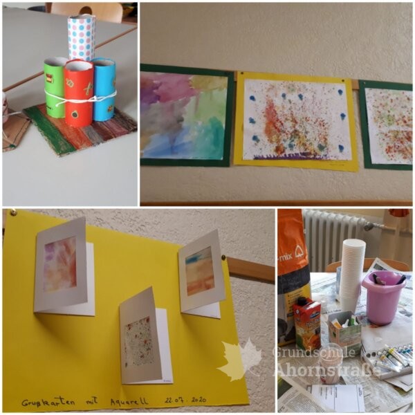 – unterschiedliche kreative Angebote wie z. B. Kreide selbst herstellen, Stiftehalter basteln, Aquarellmalerei, Grußkarten gestalten, „Upcyclen“ mit verschiedenen Materialien