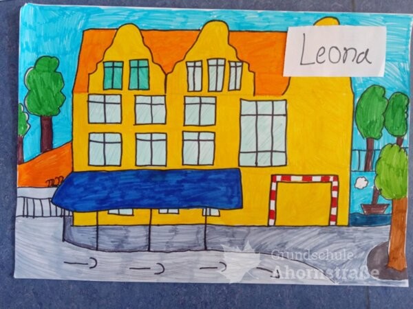 Frau Ortmann und Frau Schürmann haben vor einiger Zeit einen Malwettbewerb ausgerufen. Ziel war es, das schönste Bild unserer Schule für unser Schulprogramm zu malen. Unsere beiden Kolleginnen hatten nun die schwere Aufgabe, aus allen Bildern, die eingereicht wurden, die „Nummer 1“ auszuwählen. Dies war besonders schwer, da die Bilder allesamt wunderschön waren. Sie sind nun auch in unserer Eingangshalle ausgestellt. Den ersten Preis gewonnen hat schließlich Leona aus der Klasse 4a. Herzlichen Glückwunsch!