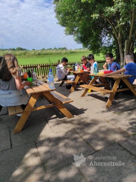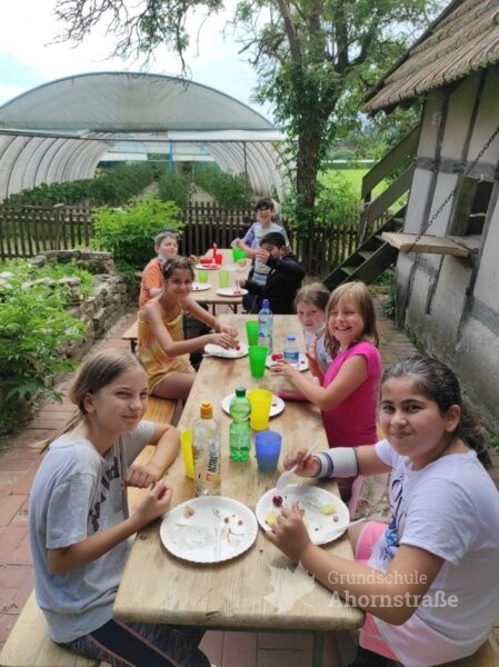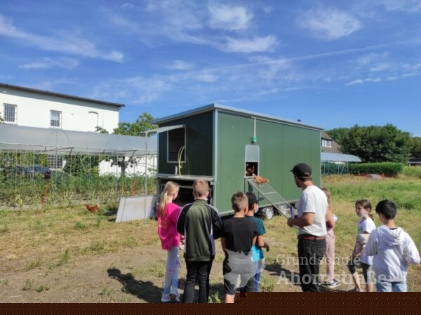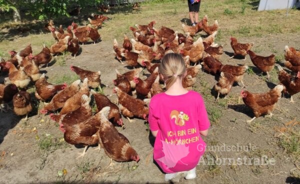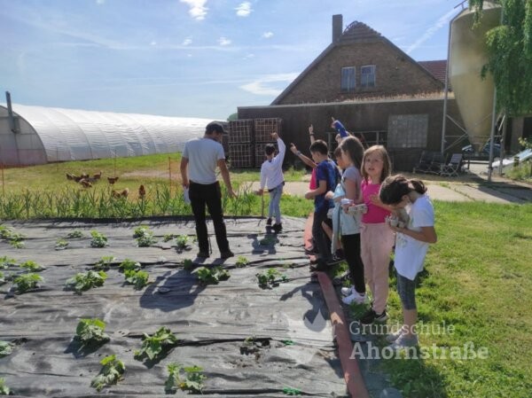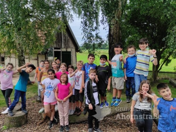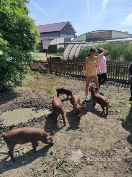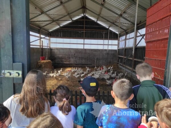 Die Klasse 3c war heute zu Besuch auf dem Bauernhof „Blaurock“ in Lage-Ohrsen. Im Sachunterricht haben die Kinder viel über das Thema Getreide gelernt und wollten sich das Bauernhofleben einmal ganz genau anschauen. Um 9 Uhr wurde die Pinguinklasse von einem Bus an der Schule abgeholt und zum Bauernhof gebracht. Dort angekommen wurden alle direkt von Hofhund Max und den weiteren Hofbewohnern begrüßt. Die Klasse wurde in zwei Gruppen aufgeteilt und konnte an einer Rallye teilnehmen. Sie suchten Puzzleteile im Stroh, begutachteten das Hühnermobil und durften ein eigenes Ei suchen. Ein Highlight war der Besuch im Schweinestall und das Streicheln der Ferkel im Freiauslauf. Außerdem durften die Kinder die Gänse füttern und zum Schluss haben alle leckeres Essen im Garten serviert bekommen. Nach einigen schönen Stunden auf dem Bauernhof wurden die Schülerinnen und Schüler wieder vom Bus zur Schule gebracht. Vielen Dank für den tollen Tag, liebe Familie Blaurock! Es war ein schöner Abschluss des dritten Schuljahres.