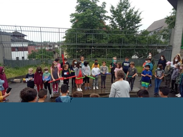 Gestern und heute standen die Tage unter dem Zeichen des Abschieds: Den Kindern und Lehrern standen teilweise die Tränen in den Augen, denn Abschied nehmen ist schwer. Doch wie heißt es bei Hermann Hesse? Jedem Anfang wohnt ein Zauber inne! Wir werden euch vermissen und wünschen euch alles Gute in den neuen Schulen! Die Kinder der 2c führten den Kindern der 4a, 4b und 4c ein extra für sie aufgeführtes Stück auf. Frau Steinhoff verlässt uns übrigens auch, sie unterrichtet nach den Ferien an einer anderen Schule, die näher an ihrem Heimatort liegt. Auch ihr wünschen wir alles Gute!