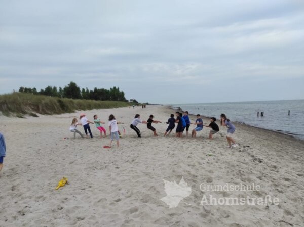 In der letzten Woche hat die Klasse 4c eine Klassenfahrt nach Grömitz gemacht. Am Montag ging es schon um 8:30 Uhr mit dem Bus los. Ohne Stau oder Übelkeit kam die Pinguinklasse an ihrer Unterkunft in Grömitz-Lenste an. Nachdem alle Zimmer bezogen waren und der erste Geburtstagskuchen vertilgt war, ging es das erste Mal an den Strand. Dort wurde gebuddelt, gespielt und es wurden Muscheln gesammelt. Nach dem Abendessen haben alle an einem Quizabend „Wer wird Grömitzer“ teilgenommen, bevor es ins Bett ging.
