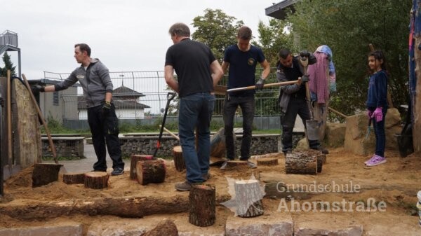 Am Montag werden die Kinder große Augen machen, wenn sie sehen, wie schön der Schulhof geworden ist und wie viele neue Spielideen für sie geschaffen wurden! Ganz ganz lieben Dank an alle Helfer*innen, groß und klein. Danke auch an Markus Brand und sein Team! Mit euch hat es wieder richtig Spaß gemacht!