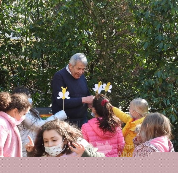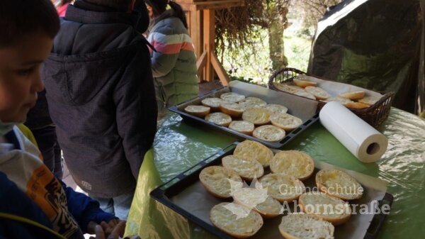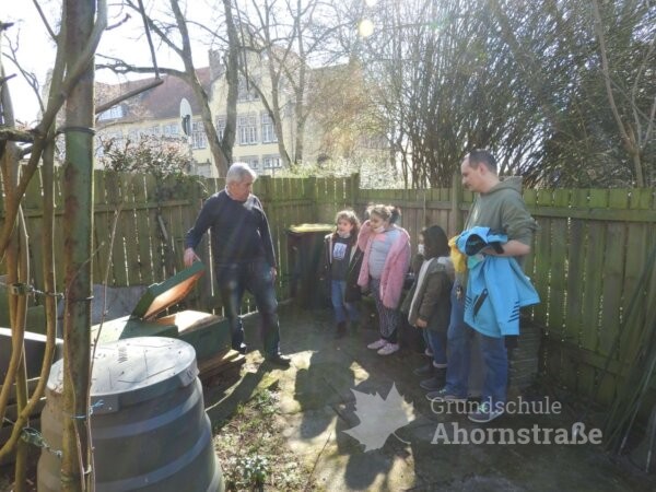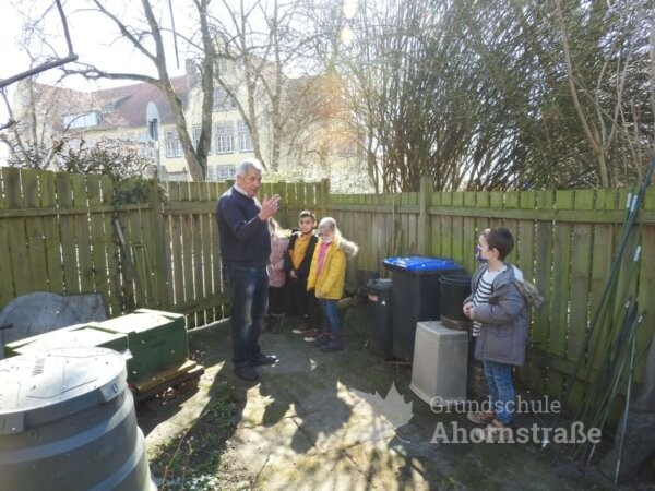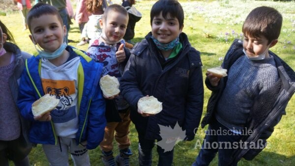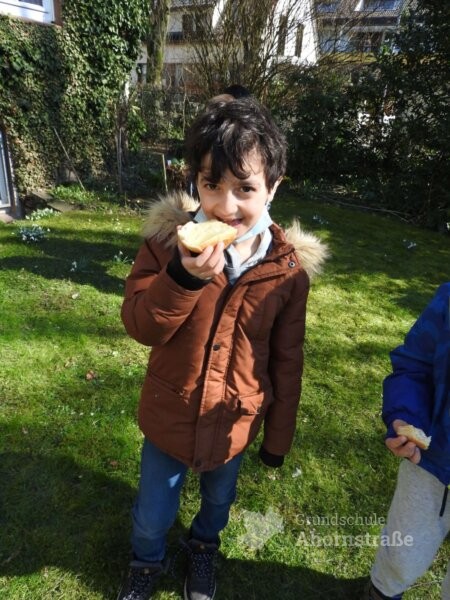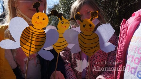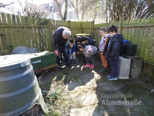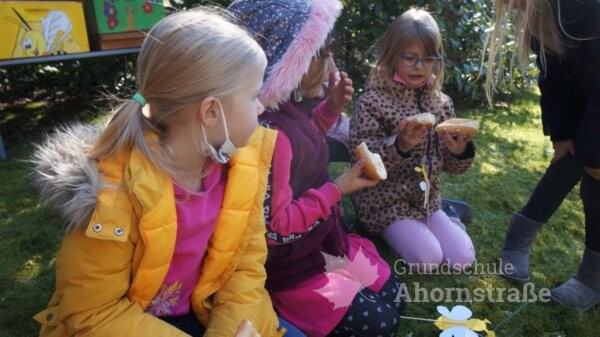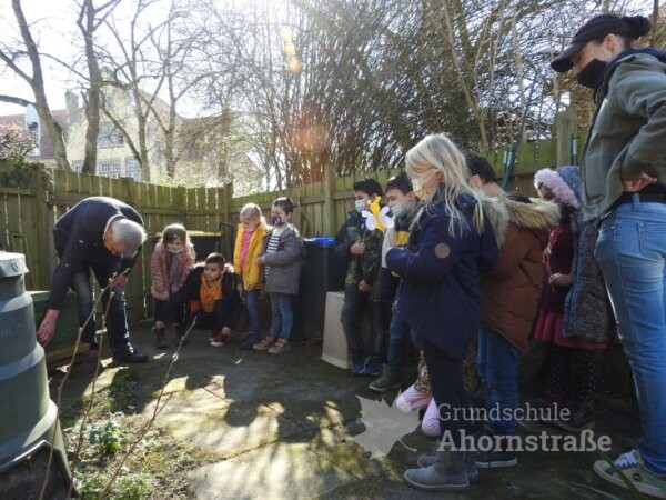 Im Rahmen einer Unterrichtseinheit zum Thema „Bienen“ folgten die Kinder der Klasse 1a einer Einladung aus der direkten Nachbarschaft unserer Schule. Herr Förster lud uns alle in seinen Garten ein und zeigte uns seine Bienenstöcke. Anhand von anschaulichen Materialien und natürlich der lebenden Bienen erhielten die Kinder einen lebendigen Einblick in die Welt der Bienen. Angst hatte hinterher niemand mehr! Und am Ende gab es für jedes Kind ein frisches Honigbrötchen. Wir bedanken uns sehr bei Herrn Förster für diese schöne Einladung!