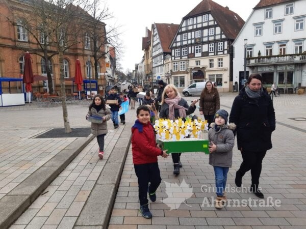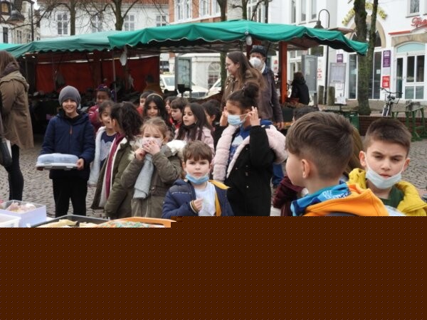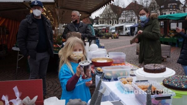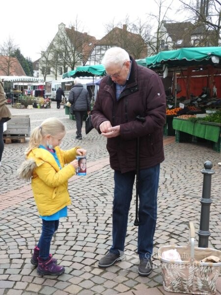 Ein besondere Unterstützung erhielten wir von Frau Sala von unserem Förderverein unserer Schule, die unter anderem vor Ort alles für uns regelte, Kaffee gekocht hat und Kekse für den Verkauf gebacken hat. Auch der Stadt Bad Salzuflen möchten wir „Danke“ sagen, weil wir nun für jeden Dienstag bis zu den Osterferien ganz unkompliziert die Genehmigung für unseren Stand erhalten haben. Besonders schön war auch, dass Radio Lippe auf unsere Aktion aufmerksam wurde und ein kleines Interview mit den Kindern über unsere Aktion mehrmals am Tag lief.