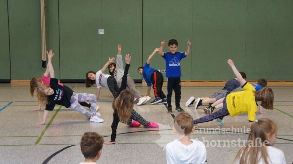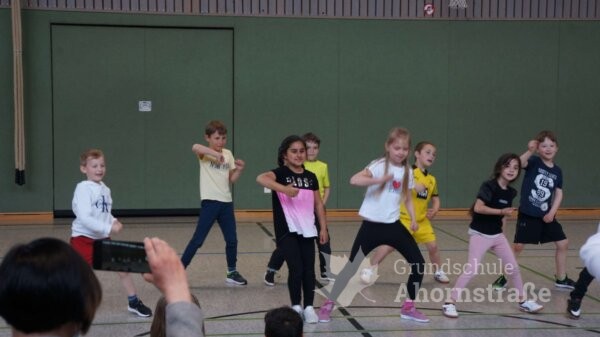 Gestern zeigten die Kinder aus der OGS was sie in den letzten Tagen bei dem Tanzprojekt „Wir bewegen Schule“ gelernt hatten. Die Eltern waren absolut begeistert, mit wie viel Freude die Kinder bei Osman tanzen gelernt haben. Hier einige Bilder des heutigen Auftritts, sie zeigen, wie viel Spaß die Kinder hatten: