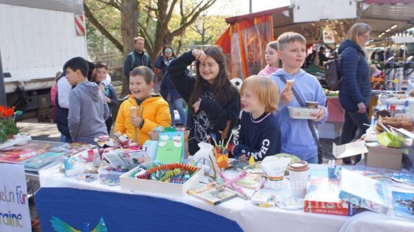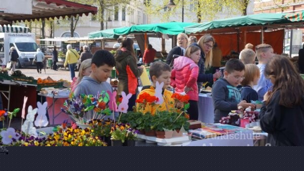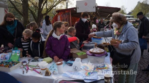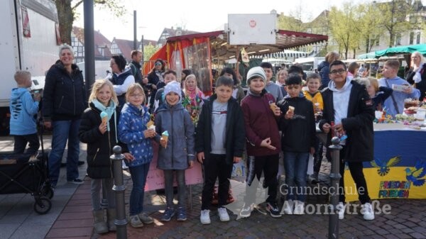 Gestern machten sich die dritten Klassen unserer Schule auf den Weg in die Stadt. Zum vierten und letzten Mal bauten wir am Markt unseren Stand zu Gunsten der Flüchtlingshilfe auf. Wir freuten uns wieder sehr über die Blumenspenden der Gärtnerei „blume und schwiegertochter“ in Lage – Hagen. Auch Frau Sala vom Förderverein unterstütze uns wieder tatkräftig. An dieser Stelle auch ein ganz großes Dankeschön an alle Eltern, die uns entweder dadurch halfen, dass sie unsere Klassen begleitet haben oder weil sie durch zahlreiche Kuchenspenden zum Gelingen dieser Aktion beigetragen haben. Der genaue Betrag der eingegangen Spenden ist noch nicht bekannt, aber so viel sei verraten: Es ist eine sehr große Summe geworden. Sobald das Geld abschließend gezählt wurde, wird das Ergebnis sofort hier bekannt gegeben.
