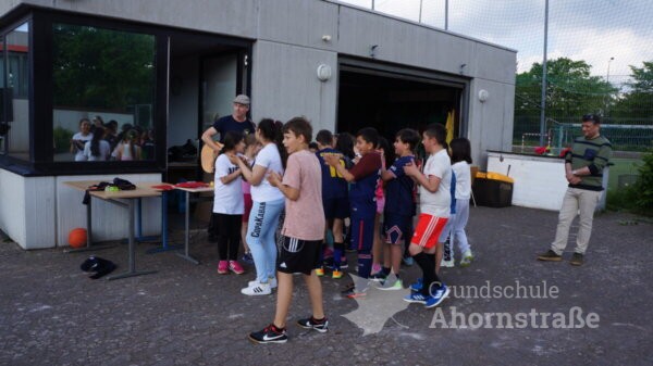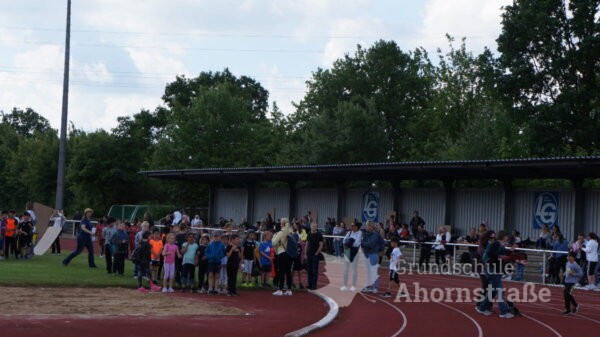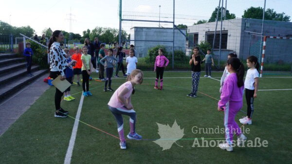 Nachdem wir nun seit zwei Jahren keine Bundesjugendspiele mehr durchführen konnten, war es in diesem Jahr endlich wieder soweit. Wir trafen uns dafür bei bestem Wetter heute auf dem Sportplatz am Schulzentrum Lohfeld. Die Kinder sprangen, liefen und warfen dabei um die Wette, wie viel Freude sie dabei hatten, zeigen die folgenden Bilder. Vielen vielen Dank an alle Eltern, die uns geholfen haben! Und ein großes Dankeschön geht auch an fünf Jugendliche, die uns die Hauptschule Lohfeld als Unterstützung geschickt hat. Die Urkunden gibt es nun zeitnah, wenn alles ausgerechnet ist.