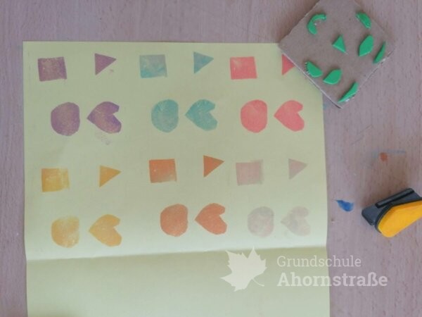 Mit verschiedenen Farben konnten wir dann auf buntem Papier drucken.