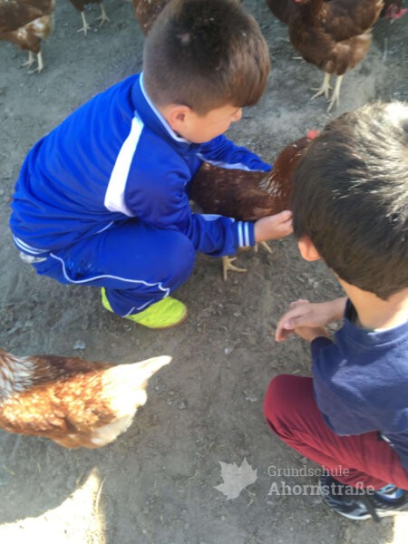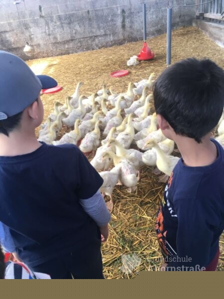 Bei strahlendem Sonnenschein und angenehmen Temperaturen haben die beiden Internationalen Klassen einen Ausflug zum Bauernhof Blaurock in Lage-Ohrsen gemacht.Die Kinder durften unter anderem selbst Trecker fahren und Hühner und Gänse füttern, frisch gelegte Eier sammeln, mit Kartoffeln Bilder drucken und Puzzleteile im Stroh suchen. Auf dem Hof leben ein großer Hund, viele Schweine und Ferkel, Gänse und Hühner. Manche Tiere konnten die Kinder streicheln. Außerdem gab es einen großen Sandkasten mit vielen Fahrzeugen, Klettergeräte und einen Schaukelreifen.Zum Mittagessen setzten wir uns alle an einen langen Tisch. Es gab Kartoffeln mit Quark und frischem Gemüse. Allen schmeckte es richtig gut. Wir haben viel erlebt. Es war ein toller Ausflug. www.blaurocks-bauernladen.de
