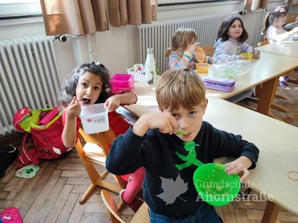 Hier ein paar schöne Bilder der 1b, die kürzlich Apfelkompott gekocht und mit viel Vergnügen aufgegessen hat. Außerdem besuchte die 1b mit ihrer Patenklasse 4b den Spielplatz: