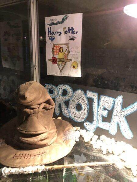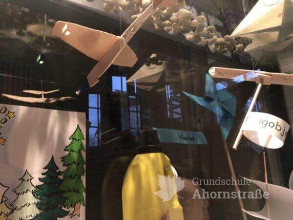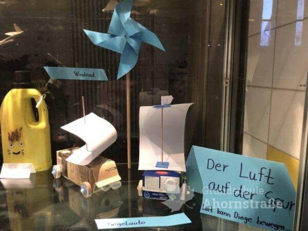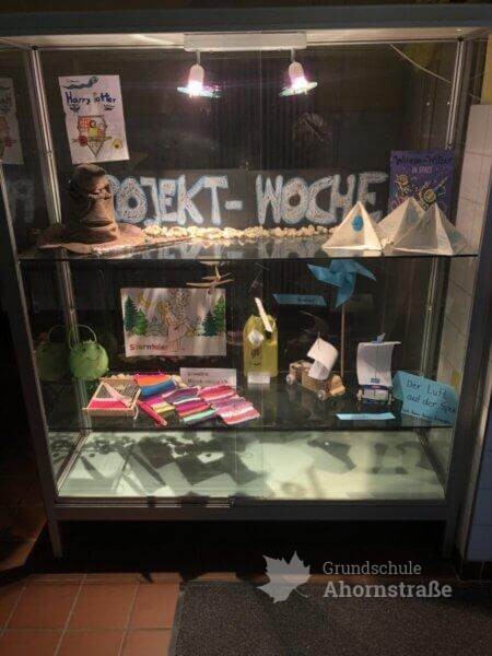 Unsere Vitrine in der gelben Schule nach der Projektwoche 2024