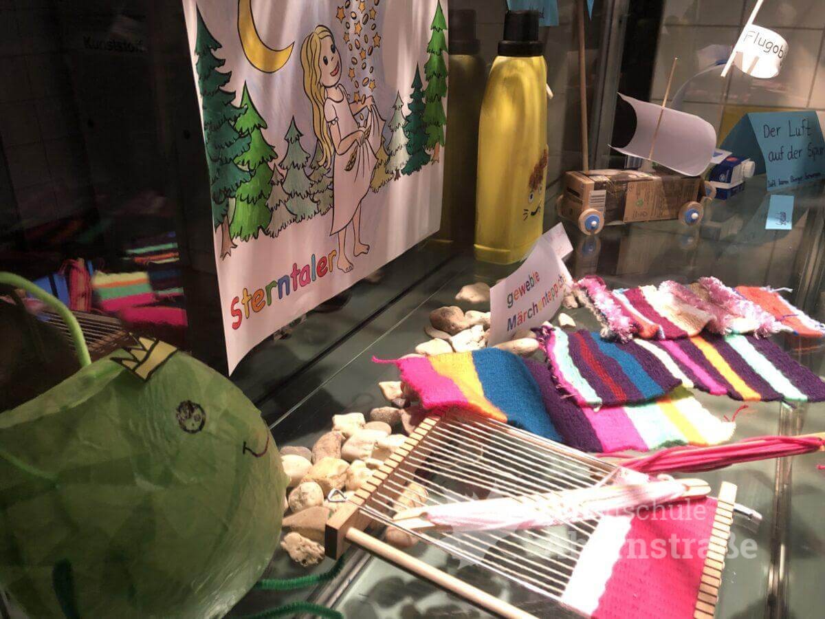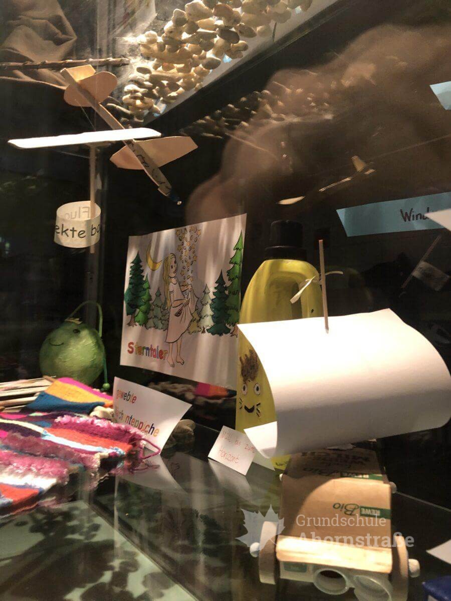Unsere Vitrine in der gelben Schule nach der Projektwoche 2024