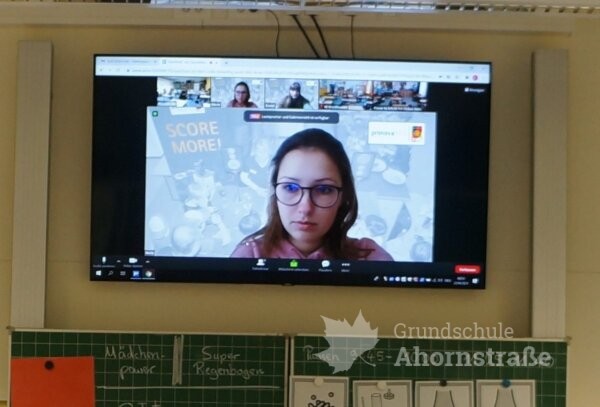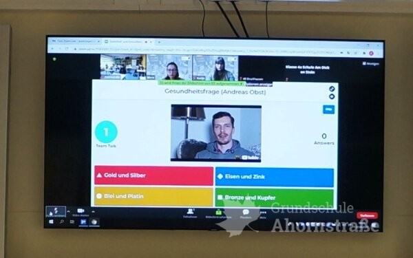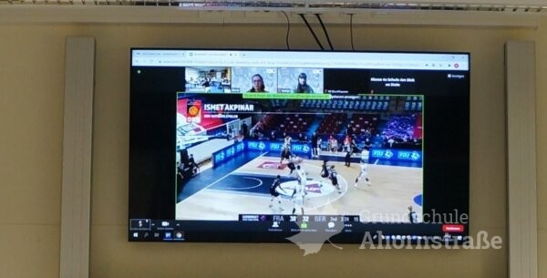 Gestern und heute hatte die Klasse 4a die Gelegenheit an einem Onlinequiz des Deutschen Basketball Bund teilzunehmen. Dank der neuen technischen Ausstattung in unserer Klasse und deren Einrichtung durch die Mitarbeiter der Stadt konnten wir uns anmelden und dieses Quiz durchführen. Gestern spielten die Kinder in zwei Gruppen gegeneinander und heute musste die zweite Gruppe des Wechselunterrichts gegen zwei andere Grundschulklassen irgendwo in Deutschland antreten. Die Fragen wurden von zwei Nationalspielern unseres Basketballteams gestellt, die Moderation gestaltete Marie Mannel ausgesprochen freundlich, wertschätzend und professionell. Auch wenn wir nicht den ersten Platz erreichten, hatten wir eine Menge Spaß! Es ist doch einiges möglich, trotz Corona, man muss nur neue Wege einschlagen. Wir hoffen, dass wir diese technische Ausstattung auch bald in allen Klassenräumen haben werden. Die Fragen kamen aus den Bereichen „Basketball“ und „gesunde Ernährung“. Nun freuen wir uns auf 10 Basketbälle für die Schule und ein Überraschungspaket für die Kinder der 4a!